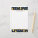 Papel de carta personalizado com um padrão de árvore de Natal azul e ouro marinho e espaço em branco para a sua mensagem. Texto, fonte, tamanho da fonte, cor e posicionamento são completamente personalizáveis, então torne-o seu.