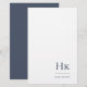 Monograma Simples Marinho Azul Papel de Carta Personalizado Branco
