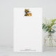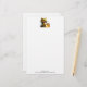Papel de papelaria com uma bela imagem. Uma garota com uma fantasia de abelha em crochê com uma abelha ao lado dela. Vendo um pote de mel.