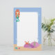 Uma moça de cartoon nadando no mar, sobre o fundo do mar, entre bolhas. Conceito marítimo, tema da vida marinha, sirene com cabelo vermelho, caranguejo e conchas.