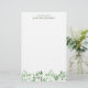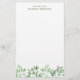 Papel de papelaria calmante em tons suaves de verde. No topo, da escrivaninha e seu nome em letras verdes elegantes. No fundo, uma linha assimétrica de verde em matizes verdes suaves para um olhar calmante ou um olhar estimulante. Papel de carta verde personalizado com o seu nome. Escreva suas cartas neste papelão personalizado com seu nome e lindos galhos de folhetos.