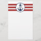 Listras náuticas vermelhas com âncora e monograma dos azuis marinhos.