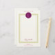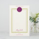 Papel de carta de negócios monograma personalizado. Um círculo roxo rico segura a sua inicial. Seu nome personalizado na parte inferior. Também personalize com seu nome de empresa, telefone e email. Uma borda dupla de ouro rodeia a área de escrevendo. Rico e elegante.