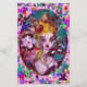 Branca vibrante e pintura artística com confete colorido..Amor mítico entre Harlequin e Columbine, pintura acrílica inspirada em máscaras de pena veneziana e Commedia dell'arte - Veneza. Cor verde-rosa-púrpura brilhante.