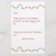 Feliz Natal, graças a nota das crianças com a design de "preencher os vazios". Branco com texto vermelho impresso, esta papelaria é decorada com uma corda de luzes no topo e no fundo. A criança pode preencher o "Querido nome" e o nome do presente, e o seu nome como assinatura. O reverso é vermelho sólido.