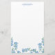 Linda papelaria floral com flores azuis que me esquecem, e não flores no fundo do jornal. Personalize a papelaria com seu nome em letras azuis elegantes sobre suas iniciais em um belo roteiro azul esbranquiçado.