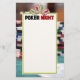 Stationerycom tipografia noturna de pôquer. Fundo é uma imagem fraca com chips de pôquer e cartas de jogar em uma mesa de jogos verde. Camadas sobre o topo é um conjunto de 4 cartas com silhuetas de meninos e meninas com o texto: Noite de Poker. Escrito em letras grandes. O centro tem um quadrado colorido creme onde você pode escrever seu texto.