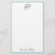 Papel branco personalizado dos artigos de papelaria do verde azul do monograma do modelo nome escrito à mão simples moderno.