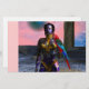 A preto tatuou a beleza com joias elegantes de ouro com seu papagaio vermelho colorido, sob o céu cósmico rosa com planetas azuis.Moldura de animação artística do filme de ficção científica de animação Hyperion World 3d.