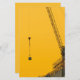 Um conjunto mínimo de artigos de papelaria personalizados com um simples design monocromático preto e amarelo. Apresenta uma grua de construção silenciada em direção ao primeiro plano com uma simples assinatura da empresa em direção ao canto inferior.