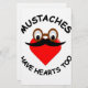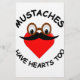 Os bigodes também têm sentimentos. Bigode de cartoon bonito com o coração vermelho e a imagem de óculos.