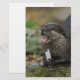 Uma lontra asiática de garra curta muito feliz apanhou o seu peixe, segurando o resto do peixe nas suas patas. Ele quase parece que tem um brilho nos olhos.