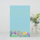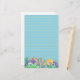 Papel de carta bonito, de cor azul e amarela, para Páscoa, que inclui uma porção de ovos decorados entre as flores roxas de croco ilustradas com aquarela. Papelaria festiva para cartas de férias, cartas de caneta, jornalismo e muito mais!