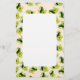 Papel de papelaria com um padrão de abacate verde criado com aquarelas. Essa design com padrão repetitivo legal tem um abacate em forma de pera com caule e folhas intactas e o outro abacate é cortado ao meio expondo seu poço. Sentado numa cama de folhas. Colocado sobre um fundo colorido de pêssego. A camada superior é uma moldura branca com cantos arredondados.