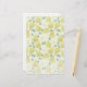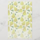 Um padrão de peras verdes vibrantes em tons de amarelo e verde com folhas verdes brilhantes. Algumas das peras são divididas pela metade para mostrar as dentro e sementes suculentas.