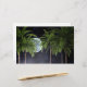Esta design apresenta uma paisagem noturna: uma lua de cheio está brilhando intensamente contra um céu negro escuro, e palmeiras com suas frondes verdes estão em primeiro plano. É uma bela obra de arte gerada por computador.