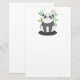Uma ilustração de um urso panda preto e branco sentado em algum bambu de aquarela verde. Uma pequena bolha de fala com um dentro do coração. Design bonito com um panda expressando seu amor.