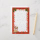 Um cachorrinho bonito com chapéu de Papai Noel segurando um presente de cana doce. Holly e sotaques do canto do arco. A papelaria tem um padrão leve de flocos de neve no centro e bordado com cana doce divertida e cobertura vermelha de vidro.