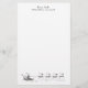 Papelaria de Natal branco personalizada com espaço para seu nome / nome comercial e endereço e um simples desenho de linha de um membro Papai noel e rena voando seu trenó na parte inferior. Texto, fonte, tamanho da fonte, cor e posicionamento são completamente personalizáveis, então torne-o seu.