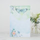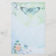 Papel de carta pastel azul esverdeado bonito com uma borboleta e um rosa em um fundo desvanecido da aguarela.