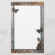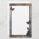 Tema único do jardim metálico com borboletas de ferro e plantas. O tema de papelaria divertida tem a sensação de Steam Punk. Fundo de aço escovado com borda de ferro enferrujada. As flores têm parafusos de fenda. Uma ideia fabulosa de presente de grunge para os Gardeners ou qualquer um com gosto por algo deliciosamente diferente.