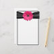 A cor de fundo nesta margarida rosa-gerbera e no papel de carta-fita preto-satin-suja é perfeitamente personalizável. Para alterar a cor de fundo, use a opção personalizar. As cores nesta papelaria são rosa-quente, preto e branco. Você pode usar isto para anotações que você quer adicionar no seu convite de casamento. Talvez um mapa e direções ou informações de acomodação. Este produto faz parte de um conjunto temático de artigos de casamento que inclui cartões RSVP, cartões salve a data, cartões de agradecimento, adesivos, ímanes, programas de casamento, papelaria, cartões de mesa e cartões de lugar.