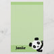 Um grupo de papel de carta que caracteriza uma ilustração digital simples de um urso de panda preto e branco de ondulação, sentando-se feliz em um fundo verde pálido. Você pode personalizar o nome na parte inferior para personalizá-la realmente.