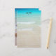 Papel de carta de areia oceânica e praia com linhas. Adicione as iniciais do monograma ao topo sobre a água turquesa. O reverso tem uma grande imagem de estrela marrom sobre a mesma cena da água. Use este artigo para escrever notas pessoais ou escritório doméstico.