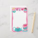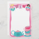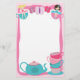 Este papel de carta do tea party é decorado com um bule do verde da cerceta que senta-se ao lado de uma pilha de teacups verdes e cor-de-rosa da cerceta na parte inferior. Na parte superior do papel de carta há duas meninas bonito decoradas nos vestidos que sentam-se em um teacup e em três borboletas entre eles.