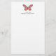 papel de carta personalizado simples e giro com seu nome apresentando uma ilustração de uma borboleta rosa.