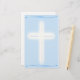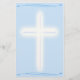 O papel de carta inspirado caracteriza uma cruz brilhante-branca no fundo azul.