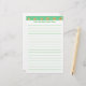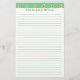 A pintura de um padrão de flores margaridas amarelas sobre um fundo verde-claro é impressa no topo do papel de carta personalizado. Um marcador de posição está lá abaixo para adicionar sua mensagem personalizada. O corpo está alinhado para um escrevendo fácil. É uma design divertida para a primavera.