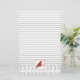Um papel de papelaria bonito, decorado com uma ave cardeal vermelha brilhante pintada com aquarela, destacada com uma borda de folhas desenhadas em caneta e tinta pretas. Bom para escrevendo de cartas, jornalismo e muito mais!