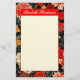 Este artigo de papelaria vertical 5.5x8.5 personalizável apresenta seu nome em um belo roteiro, com uma vibrante, dramática, vermelha e creme ilustração floral em um fundo escuro