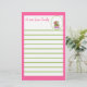 Papel de nota alinhado bonito para crianças em cor-de-rosa e verde brilhantes com gráfico do sapo.