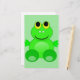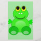 Folheto de recortes bonito que apresenta um sapo de desenho verde e bonito sobre um fundo verde listrado.