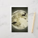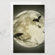 Imagem temática de Halloween e gótica. Uma grande lua de cheio à noite com morcegos voando e um corvo sentado no galho de uma árvore cagada.