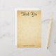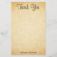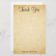 Um casamento Obrigado design com um design de fundo impresso no estilo de papel antigo, projetado para parecer semelhante a um padrão falsa de pergaminho. O fundo é um impressão de padrão em cores bege amareladas / bronzeadas. Há texto na moda preto que pode ser personalizado.