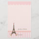 Design feminino bonito e super do bebê que caracteriza uma torre Eiffel marrom com uma fita cor-de-rosa na parte superior. Flores cor-de-rosa doces pela base das torres, assim como listras cor-de-rosa e outros ornamento delicados.