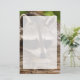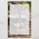Papel de carta com fotografia de um guaxinim fofo e curioso descansando o rosto num tronco de madeira. Adorável.