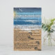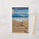 Uma pintura de uma praia com pegadas e as pegadas do poema na areia.