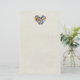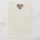 Papel de carta com um design de penas, de cor aquosa, em forma cardíaca, no topo do papel.