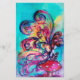 Florestas de fadas brancas, coloridas e vibrantes encantadas à luz da lua. Pintura aquosa acrílica com brilhos dourados e cores iridescentes. .Uma flor mágica vibrante em azul-aqua brilhante, verde, verde, castanho-vermelho, cores amarelas com folha de ouro e prata .. Bonita para o Natal, Feriados, ocasiões especiais, aniversários, casamento e Dia de os namorados