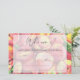 Cartão de chá de panela com tema de fruta de aquarela com ilustração aquosa do padrão e folhas de pêssegos. Manuscrito caligráfico elegante, perfeito para primavera, verão ou casamentos de outono. Itens correspondentes disponíveis.