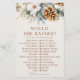Esta é uma Preferencialmente? Jogo do chá de panela. Ela Preferencialmente? - A noiva preencherá a sua própria ficha de resposta pessoal. Os hóspedes farão circular a opção correta, dado o seu próprio conhecimento pessoal sobre a noiva. Quem tem as respostas mais corretas, ganha!