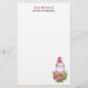 Papel de papelaria com um design bonitinho e caprichoso com um pinguim adorável vestindo um chapéu de santa vermelho. Ficando atrás de um buquê de flores com canas doces listradas cor-de-rosa e branca.