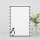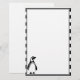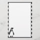 Design do pinguim em artigos de papelaria com beira listrada preto e branco.