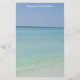 Esta bela fotografia do oceano apresenta água azul bonito a enrolar-se para a praia. O bonito azul claro do céu e do mar junto com a areia clara da praia faz o fundo perfeito para compor suas cartas nas férias de verão. Papel de carta clássico para uma casa de praia ir embora para os seus hóspedes para deixar resenhas nas suas férias em casa.