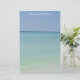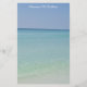 Esta bela fotografia do oceano apresenta água azul bonito a enrolar-se para a praia. O bonito azul claro do céu e do mar junto com a areia clara da praia faz o fundo perfeito para compor suas cartas nas férias de verão. Papel de carta clássico para uma casa de praia ir embora para os seus hóspedes para deixar resenhas nas suas férias em casa.