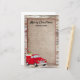 Madeira russa e papel de papelaria personalizado para burlap com "Feliz Natal" e seu nome de família no topo. No fundo está um belo carregando de caminhão vermelho, uma enorme quantidade de presentes de Natal. Perfeito para a sua carta de Natal escrevendo. O texto é personalizável, então faça dele seu. Entre em contato conosco para obter ajuda com a personalização ou para solicitar produtos correspondentes.
